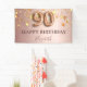 Elegant, classic, glamourous and girly for a 90th birthday party. Rose gold and blush pink, gradient background. Decorated with faux gold stars. Personalise and add a name. With the text: Happy Birthday. The name is written with a modern dark rose coloured hand lettered style script. Number 90 is written with a balloon style font.