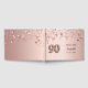A guestbook for a girly and glamourous 90th birthday party. A faux rose gold background with rose gold, pink dripping stars. Personalise and add a name and date. The name is written in dark rose gold with a modern hand lettered style script. Number 90 is written with a balloon style font.