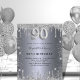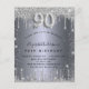 A modern, stylish and glamourous invitation for a 90th birthday party. A faux silver looking background, decorated with glitter dust. Personalise and add your name and party details. Number 90 is written with a balloon style font, script.