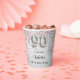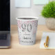 For a glamourous and girly for a 90th birthday party. A faux silver looking background. On the front and the back: Personalise and add a name, and a date. Decorated with pink and faux silver glitter dust. Number 90 is written with a balloon style font.