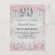 90th birthday silver pink metal glitter dust invitation postcard