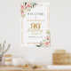 Immerse yourself in the charm of this sophisticatedly curated design, featuring delicate pinks of vintage roses fused with the verdant freshness of eucalyptus foliage. The gold frame serves as the perfect highlight, adding a touch of opulence to the mix. This design is specifically tailored for 90th Birthday welcome poster porch sign, infusing traditional elegance with a modern bohemian vibe. It's an alluring blend of classic floral warmth with a chic metallic edge. "Boho Blush" is a harmonious symphony of blush pink, eucalyptus green, and gold, evoking an atmosphere of timeless romance, sure to leave spellbinding impressions.