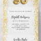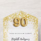 A white background, decorated with faux gold confetti on the inside. Personalise and add a name, party details, RSVP date, return address and name. Number 90 is written with a balloon style number.