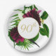 90TH Blue Gold Floral Elegant Modern Birthday Paper Plate