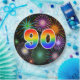 This cheerful, fun, and colourful paper plate design features a large number "90" having a rainbow spectrum gradient inspired pattern colouring. It also features a exciting and vibrant bursting celebratory fireworks inspired pattern. The background is coloured black. Fun paper plates like this might be used at a celebration being held in honour of somebody’s ninetieth birthday, a ninetieth anniversary, or some other 90th event. [~Z0000490]