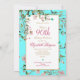 90th Floral Aqua Blue Elegant Monogram Birthday Invitation