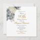 90th Floral Blue Gold Elegant Photo Birthday Invitation