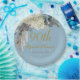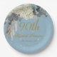90th Floral Blue Gold Elegant Photo Birthday Paper Plate