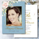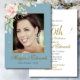 90th Floral Roses Gold Blue Elegant Photo Birthday Invitation