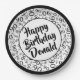 This over-the-hill design has a black and white random number pattern with a black milestone number 90 repeated in varied sizes and angles. There is a white circle in the centre for your text and black-and-white rings around the rim.