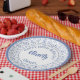 It is easy to personalise this unique design with your name, initial or monogram using the text templates provided. This over-the-hill theme has a blue and white random number pattern with milestone number 90 repeated in varied sizes and angles in the background. There is a white circle in the centre for your text, and blue and white rings around the rim.