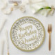 90th Party Random Number Pattern Gold/White Paper Plate