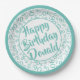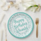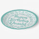 This over-the-hill design has a teal and white random number pattern with a teal milestone number 90 repeated in varied sizes and angles. There is a white circle in the centre for your text and teal-and-white rings around the rim.