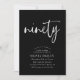This modern, white on black design features the word "ninety" in a script style calligraphy and an elegantly spaced, modern typography comprising classical serif fonts. The invitations reverse to a delicate repeating triangle pattern in black and chromatic grey. Suitable for men or women. Choose from printed Zazzle invitations with different corner styles and gorgeous paper stock, or instant download if you need it now, or both so you can send paper and digital invites as required.