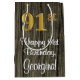 This elegant, stylish, and luxurious birthday gift bag design features a large ordinal number “91st” having a faux/imitation gold-inspired gradient pattern, along with the birthday greeting message “Happy 91st Birthday,” and a custom recipient name in a script-style font. It also has a faux wood-inspired background pattern. A birthday themed gift-bag like this might be a fun way to wrap a gift or present being given to celebrate somebody’s ninety first birthday. [~Z0000520]