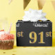 This luxurious, elegant, and sophisticated birthday-themed wrapping paper design features a large ordinal number “91st” having a faux/imitation gold-inspired look, in addition to the birthday greeting message “Happy 91st Birthday,” and a personalised recipient name in a script-style font. The background is coloured black. Luxurious wrapping paper like this might be a fun way of wrapping a birthday present or gift being given to somebody who is celebrating their 91st birthday. [~Z0000515]