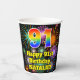 91st Birthday: Fun Fireworks Pattern + Rainbow 91 Paper Cups