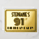 The front of this luxurious and 1920s-1930s style inspired ninety-first birthday party foil invitation card design features a customisable name, an intricate art deco style inspired number “91st”, the message “BIRTHDAY PARTY”, and a border pattern consisting of lines. The back features personalised details about the event, such as the date, time, location, and any other information that may be relevant. Luxurious, elegant, customisable invitations like these might be used to invite attendees to a birthday party/gathering being held in celebration of somebody’s 91st birthday. [~Z0000594]