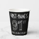 This stylish 1920s-1930s era inspired art deco style birthday-themed paper cup design has a custom name, and the message “91ST BIRTHDAY PARTY!”. The number “91ST” has a fancy geometric lined look. Birthday themed paper cups like this might be a fun way to celebrate somebody’s ninety-first birthday, or some other 91st event. [~Z0000658]