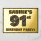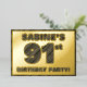 The front of this bold ninety-first birthday celebration foil invitation card features an editable name, a large number “91st”, the message “BIRTHDAY PARTY!”, and a border, all featuring a rustic, yet sophisticated, faux wood grain look inspired pattern. The back features personalised details about the event, such as the date, time, place, and any other useful information. Editable invitations like these might be used to invite guests/attendees to a birthday gathering being held to honour somebody’s 91st birthday. [~Z0000595]
