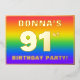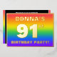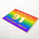The front of this fun and exciting ninety-first birthday celebration foil invitation card design features an editable name, a large number “91st”, the message “BIRTHDAY PARTY!”, and a border. The background of the front has a joyful, colourful, rainbow spectrum inspired gradient pattern. The back features personalised details about the event, such as the date, time, venue/location, and any other information that may be important. Customised invitations like these might be a fun way to invite attendees to a birthday gathering/party being held to celebrate somebody’s 91st birthday. [~Z0000599]