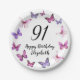 91st Birthday Pink Purple Butterflies Paper Plate