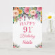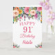 91st Birthday Watercolor Floral Flowers Pink Card