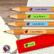 DIY pen stickers with a small red marijuana beetle on a background in purple, blue, green and orange - to cut, for children, with name personalizable. Made of 64 pin stickers - approximately 4.45 cm x 0.79 cm Made of 28 Mini-Pen stickers - approximately 2.2 cm x 0.79 cm Cut and paste on the black line. Ideal for personalizing small objects like pens. Great gift idea to start school or start a kindergarten.