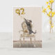 Grey tabby cat with gold foil balloons on an old-fashioned chair for 92nd birthday.