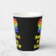 This exciting and colourful birthday-themed paper cup design features a large number “92” with a rainbow spectrum gradient inspired pattern, along with the message “Happy 92nd Birthday,”, and a custom name. It also has a black-coloured background. Colourful, vibrant paper cups like this might be fun to have at a birthday party/celebration being held in celebration of somebody’s 92nd birthday. [~Z0000537]
