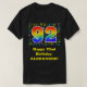 This fun, colourful, and vibrant birthday-themed shirt design features a large number "92" having a rainbow spectrum gradient inspired pattern. It also features the message "Happy 92nd Birthday,", and a personalised name. A vibrant, colourful pattern of various music notes and music symbols appears behind the rainbow-coloured birthday number. Fun, customised birthday themed shirts like this might be worn by the attendees at a birthday celebration being held to celebrate a musician’s, a song composer’s, a singer’s, or somebody else’s ninety second birthday. [~Z0000428]