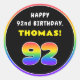 92nd Birthday: Colourful Rainbow # 92, Custom Name Classic Round Sticker