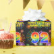 This joyful and fun birthday-themed wrapping paper design features a large number “92” with a colourful rainbow spectrum gradient inspired pattern, along with the message “Happy 92nd Birthday,”, and a customisable name. The background features a vibrant and colourful pattern inspired by the appearance of bursting celebratory fireworks. Multicolored birthday themed wrapping paper like this might be a fun way to wrap a gift or present being given to celebrate somebody’s 92nd birthday. [~Z0000587]