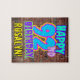 This fun birthday-themed puzzle design features the message “HAPPY 92ND BIRTHDAY,” having a vibrant, colourful, graffiti-inspired appearance, in addition to a customisable recipient name. The background features a pattern inspired by the look of a brick wall. A fun, customised birthday puzzle like this might be used to acknowledge somebody’s ninety-second birthday. [~Z0000532]