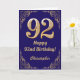92nd Birthday Navy Blue and Gold Glitter Frame Card