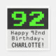 This nerdy and geeky birthday-themed paper napkin design features a large green classic computer game style number "92" on a black coloured background. It also features the birthday greeting message "Happy 92nd Birthday,", and an editable name. Silly and nerdy paper napkins like this might be useful at a party being held to celebrate the 92nd birthday of a computer programmer, a scientist, or somebody who really likes retro video games. [~Z0000404]