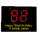 This geeky and nerdy birthday themed gift bag design features a large number "92" with a red seven segment digital display style look, along with the message "Happy 92nd Birthday," and a personalised name in geeky computing-inspired yellow text, on a black coloured background. A personalised gift bag like this might be used when wrapping presents or gifts being given to celebrate somebody’s ninety second birthday. [~Z0000389]