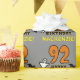 This spooky and scary Halloween birthday themed wrapping paper design features a large number "92", along with the message "HAPPY BIRTHDAY,", and a customisable name. There are also depictions of a ghost and a bat on the front. Wrapping paper like this might be fun to use when wrapping presents that are being given to somebody whose ninety second birthday falls on October 31st (Halloween). [~Z0000411]