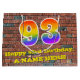 This vibrant and colourful birthday-themed gift bag design, inspired by graffiti and urban art, features a large number "93" having a rainbow spectrum gradient inspired pattern. It also features the message "Happy 93rd Birthday,", and an editable name. It also has a brick wall inspired pattern background. A fun giftbag like this might be used when giving a gift or present in honour of somebody’s 93rd birthday. [~Z0000522]