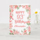 93rd Birthday Pink Peach Peonies Watercolor Floral Birthday Card. For further customisation, please click the "Customise it" button and use our design tool to modify this template.