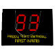 This fun and geeky birthday-themed gift bag design features a large number "93" with a red seven segment digital display inspired appearance, along with the message "Happy 93rd Birthday," and a custom name in nerdy yellow text, on a black coloured background. Customised gift bags like this might be used when wrapping presents or gifts being given in honour of somebody’s ninety third birthday. [~Z0000389]