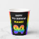 94th Birthday: Colourful Rainbow # 94, Custom Name Paper Cups