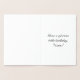 The front of this opulent and ornate birthday-themed foil greeting card design features the message “Happy 94th Birthday,” in luxurious script style text. The inside has a customisable birthday greeting message, or could perhaps be cleared and left blank if a message is to be written by hand instead. An elegant, customisable birthday greeting card like this might be a respectable way to send a birthday greeting message to somebody who is celebrating their ninety-fourth birthday. [~Z0000555]
