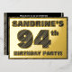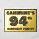 The front of this bold ninety-fourth birthday party foil invitation card features a custom name, a large number “94th”, the message “BIRTHDAY PARTY!”, and a border, all featuring a rustic, yet elegant, faux wood grain look inspired pattern. The back features personalised details about the event, such as the date, time, venue, and any other information that may be important. Editable invitations like these might be used to invite guests/attendees to a birthday gathering being held in celebration of somebody’s 94th birthday. [~Z0000595]