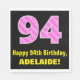 94th Birthday: Pink Stripes and Hearts "94" + Name Napkin