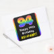 This exciting and upbeat birthday square sticker design features a large number “94“ having a multicolored rainbow spectrum inspired gradient pattern, along with the message “Happy 94th Birthday,”, and an editable recipient name. Stickers like these might be used when celebrating somebody’s 94th birthday. [~Z0000630]