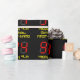 This silly and fun birthday-themed wrapping paper design features a large number "94" having a red seven segment digital display inspired appearance, along with the message "Happy 94th Birthday," and a custom name in nerdy retro style yellow text, on a black coloured background. Birthday themed wrapping paper like this might be a fun way to wrap a gift or present being given to celebrate somebody’s 94th birthday. [~Z0000387]