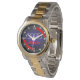 Very good quality watch that looks good whether dressing up or down. The band is sturdy. The watch is rather large so might not work for smaller folks. Recommended as a good gift. Printing is just a touch light but adds a nice touch of personalization.