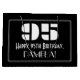 This Roaring '20s look inspired vintage style birthday gift bag design features a large art deco style inspired number "95", the message "Happy 95th Birthday,", a personalised name, and a border pattern consisting of thin lines. The background is coloured black. A birthday themed gift bag like this could be used to wrap a gift or present being given to somebody who is celebrating their 95th birthday. [~Z0000495]