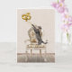 Grey tabby cat with gold foil balloons on an old-fashioned chair for 95th birthday.
